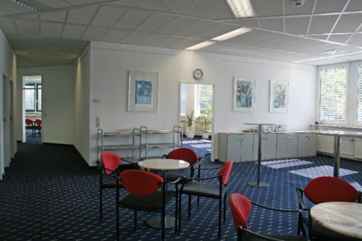 An die Schulungsräume gliedert sich ein großzügiger und einladender Pausenbereich mit Wasserspender, Garderobe sowie Sanitäranlagen.